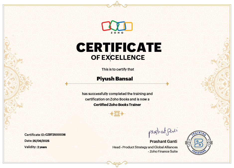 Authorised Zoho Partner and Certified Zoho Books Trainer delivering end-to-end Zoho